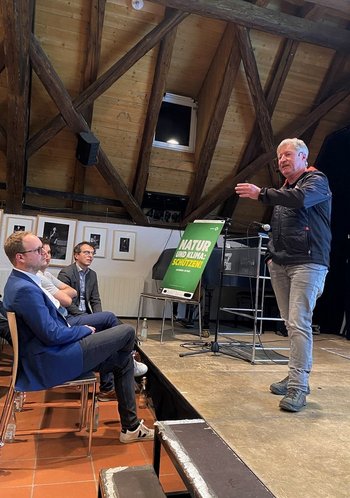 Auf Einladung der Kreisverbände und des Grünen-Bundestagsabgeordneten Marcel Emmerich referierte Roth daher eine gute Stunde darüber, wie sich der Klimawandel schon heute zeigt und auch in Zukunft in der Region auswirken wird: Mit anschaulichen Diagrammen und vielen aus dem Kopf zitierten Zahlen stellte Roth dar, dass die Temperaturen auch hier in der Region bereits deutlich gestiegen sind. Während 2024 erstmals die globale Durchschnittstemperatur die 1,5-Grad-Marke im Vergleich zum vorindustriellen Niveau überschritten hat, sei es in Ulm bereits 2,2 Grad wärmer, sagte Roth. Den genannten Frust wandelte er in seinem Vortrag daher in einen leidenschaftlichen Appell um: Im Gegensatz zur Wettervorhersage, bei der selbst er sich einmal vertun könne, sei die Sache mit dem Klimawandel eindeutig - und die Konsequenzen, die man ziehen müsse, daher auch. Als Maßnahme nannte der leidenschaftliche Radfahrer unter anderem das Tempolimit, das eine unbestreitbar sinnvolle Maßnahme sei: "Wir sind eines von wenigen Ländern auf der Welt, die kein Tempolimit auf Autobahnen haben. Und die anderen haben teils gar keine Autobahnen!" Ein Zuruf, den die rund 100 Zuschauenden im Pfleghof mit kräftigem Applaus empfingen. Fast schon schade fand es Roth, vor gut informierten und klimabewegten Menschen zu sprechen und nicht die zu erreichen, die dem Thema zu wenig Bedeutung beimessen. Andererseits sei ihm "jede Minute zu schade, um mit Klimawandelleugnern zu diskutieren".