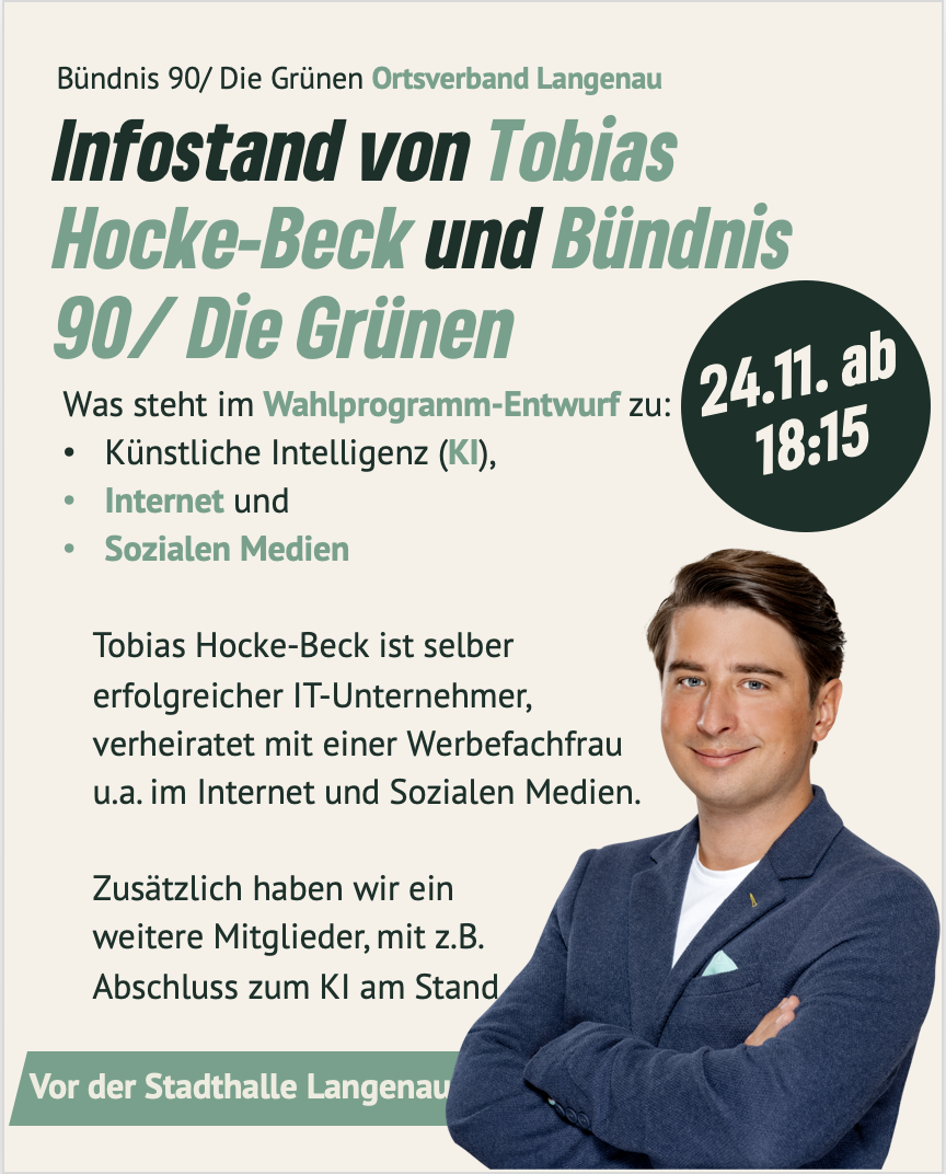 Infostand in Langenau mit Landtagskandidat Tobias Hocke-Beck zum Thema KI